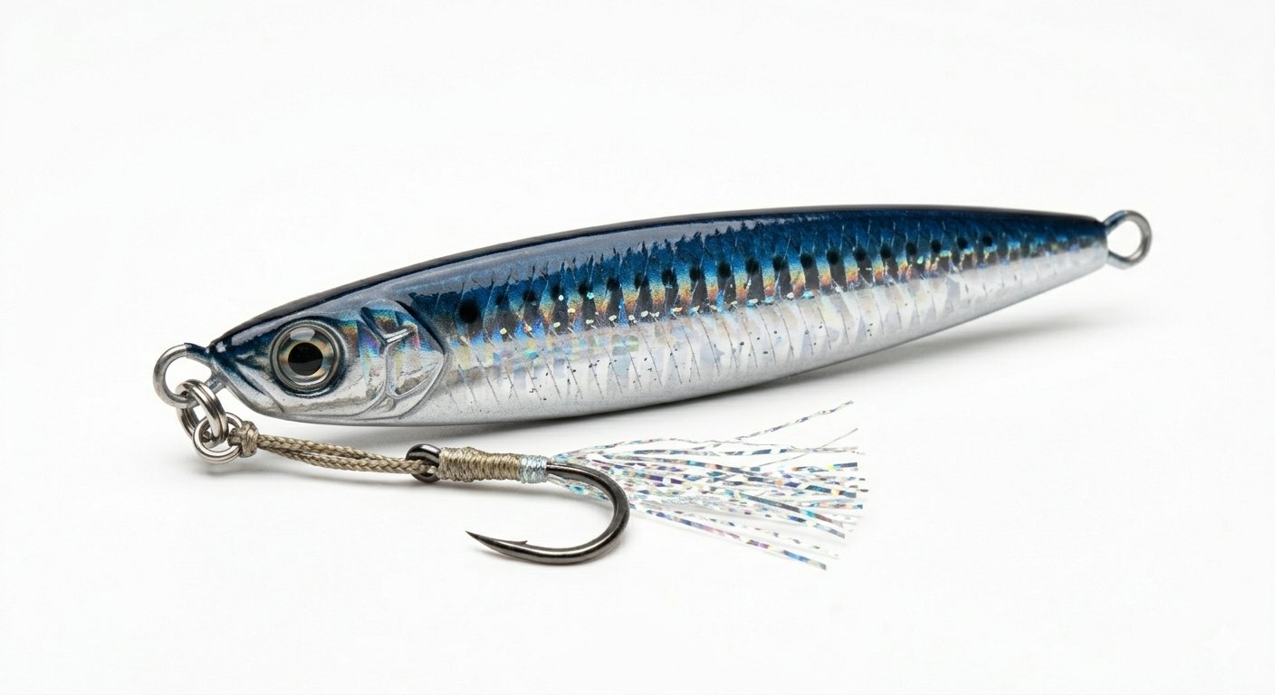 Sardine fraîche ou encornet · hameçon 4/0 · montage plomb coulissant 60g